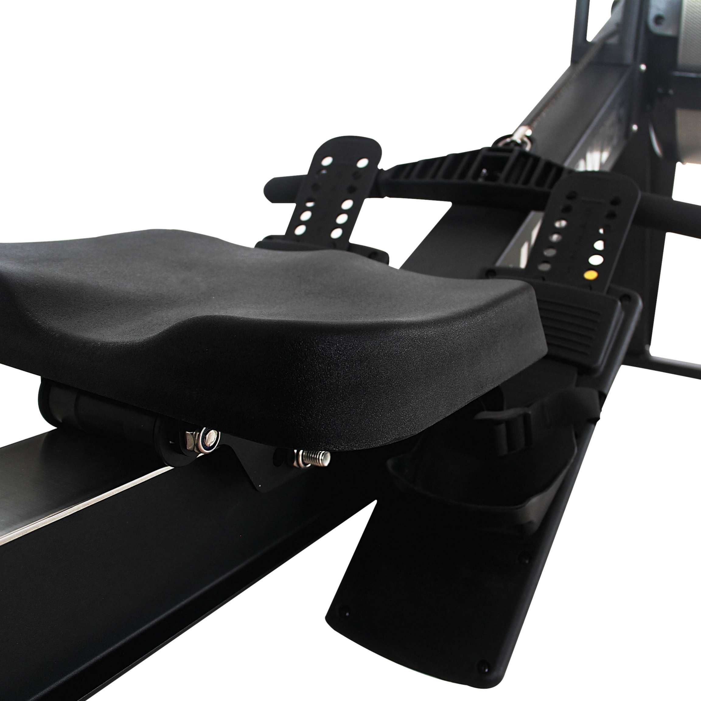 Állítható, párnázott ülés nagy sűrűségű habszivaccsal a hosszú edzések kényelméért. Az állítható pántokkal ellátott csúszásmentes lábtámaszok minden lábmérethez illeszkednek, biztosítva a stabilitást evezés közben. A kormány csúszásmentes PU anyagba van burkolva, így kényelmes, biztos fogást biztosít. Az ülésmagasság és a kormány helyzete teljesen állítható, hogy megfeleljen a különböző magasságú (150-195 cm) felhasználóknak.