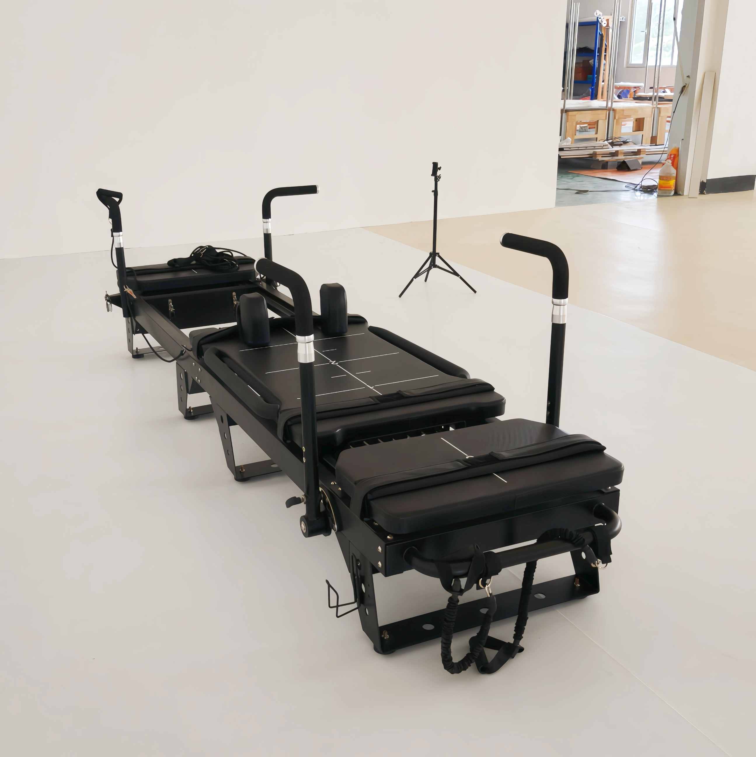 Optimalizált méreteivel és szilárd felépítésével a Pilates Reformer Machine tökéletesen illeszkedik a modern kereskedelmi terekbe. Mérete 3230*885*980cm, így a legtöbb stúdió elrendezéshez jól illeszkedik. A 163 kg-os (359,4 font) súlya kivételes szerkezeti integritást biztosít a hosszú távú, nagyfrekvenciás professzionális használatra.